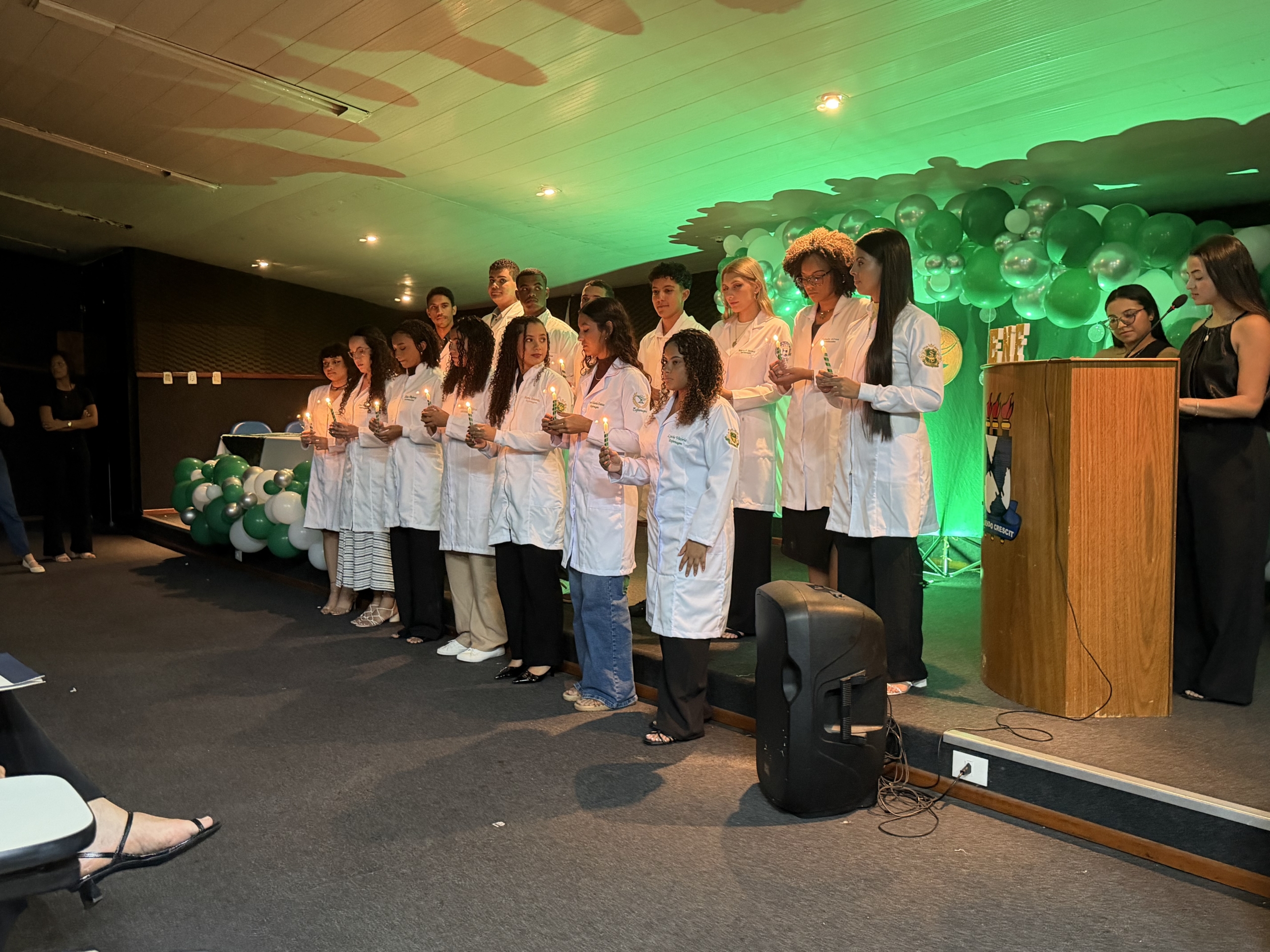Durante a cerimônia, o rito da lamparina foi destaque como um dos momentos mais emblemáticos do evento. Tradicional na formação em Enfermagem, o gesto simboliza a luz do conhecimento, o compromisso com o cuidado e a dedicação à vida humana.