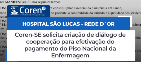 Coren-SE solicita apuração ao Delegacia Regional do Trabalho em Sergipe sobre ampliação de carga horária de profissionais do PSS